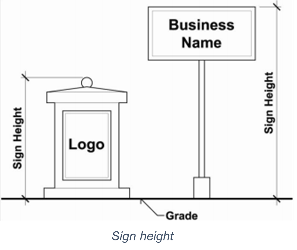 "Sign height:" the vertical distance measured from the adjacent grade at the base of the sign support to the highest point of the sign or sign structure, whichever is higher.