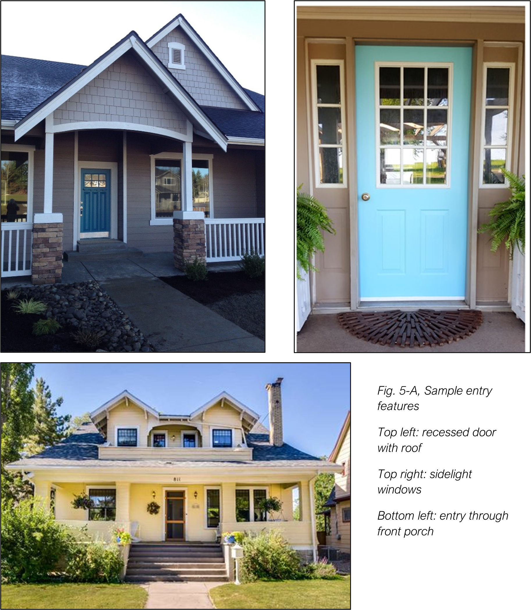 Front entrance emphasis using one of the following design features: