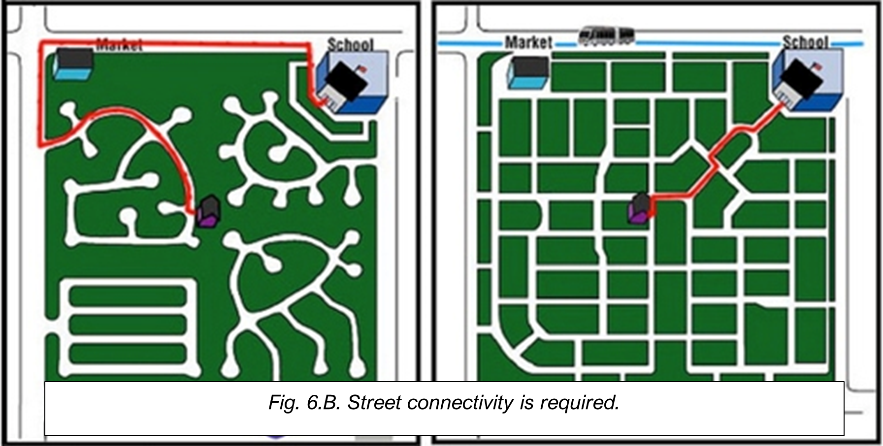 Within new residential subdivisions, bicycle and pedestrian paths, trails, and/or bicycle lanes shall also connect to collector and collector streets. Easements and/or rights-of-way shall be provided for bicycle/pedestrian paths between and within developments as necessary to provide pedestrian and bicycle linkages between developments unless the applicant can demonstrate that to do so would be infeasible.