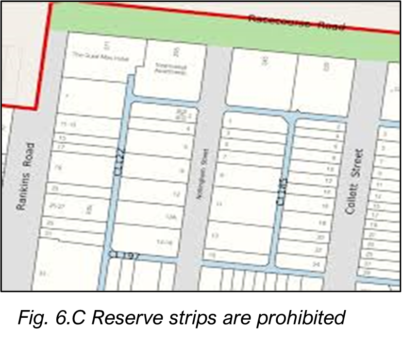 Reserve strips of land controlling access to or egress from other property or to or from any street or alley or having the effect of restricting or damaging the adjoining property for subdivision purposes shall not be permitted in any subdivision unless such reserve strips are conveyed to the Town in fee simple.