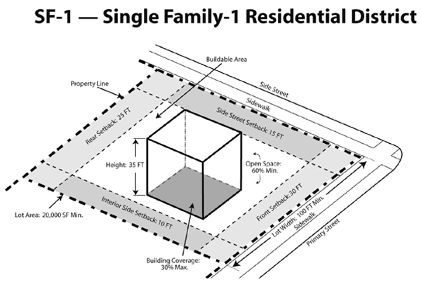 The intent and purpose of the single-family residential-1 district (SF-1) is to protect and preserve the integrity and value of existing, stable residential neighborhoods of estate density while at the same time allowing a careful and deliberate redevelopment and revitalization of such neighborhoods in need of reinvigoration or neighborhoods with unique amenities which create unique opportunities to increase property values and the overall attractiveness of the city.