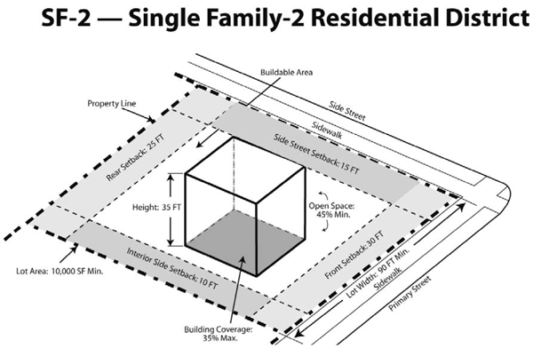 The intent and purpose of the single-family residential-2 district (SF-2) is to protect and preserve the integrity and value of existing, stable residential neighborhoods of estate density while at the same time allowing a careful and deliberate redevelopment and revitalization of such neighborhoods in need of reinvigoration or neighborhoods with unique amenities which create unique opportunities to increase property values and the overall attractiveness of the city.
