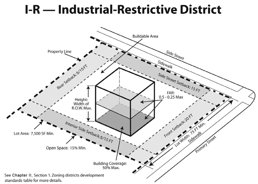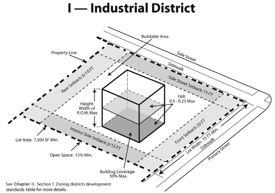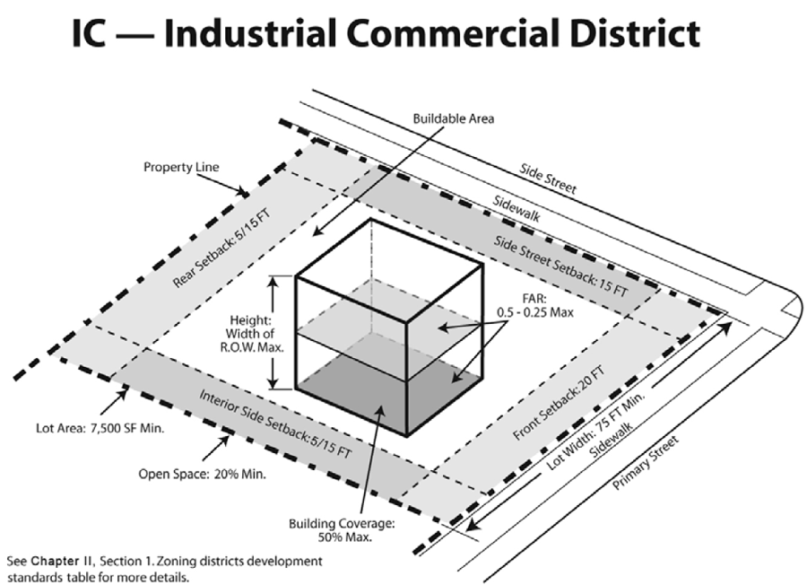 The following is a graphic depiction of the development standards for the industrial commercial district (IC). If the property is located within in the Doral Décor Overlay, then section 68-863(a) shall apply: