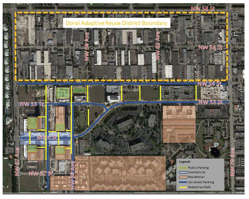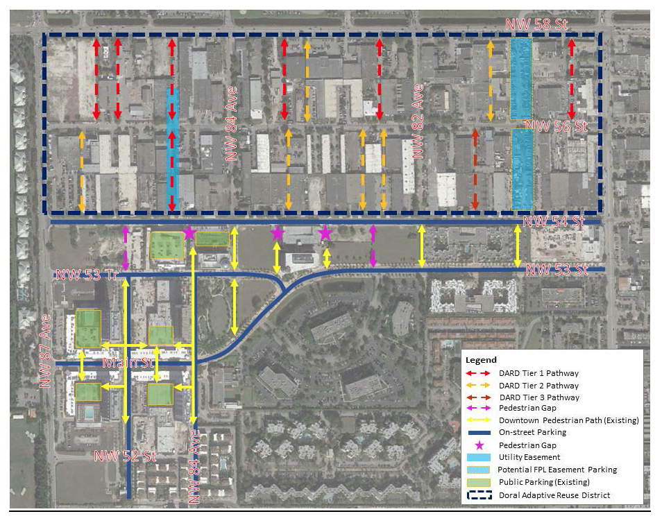 The Doral Décor Overlay District (DDOD) is intended to implement the Doral Design District comprehensive plan future land use category and related policies. The district supports the continuation of the area's focus as a center for the production and sales of tile, cabinetry, and other elements of décor for residential and non-residential buildings, while enabling reinvestment for a variety of commercial and light industrial uses that will be compatible with surrounding uses.
