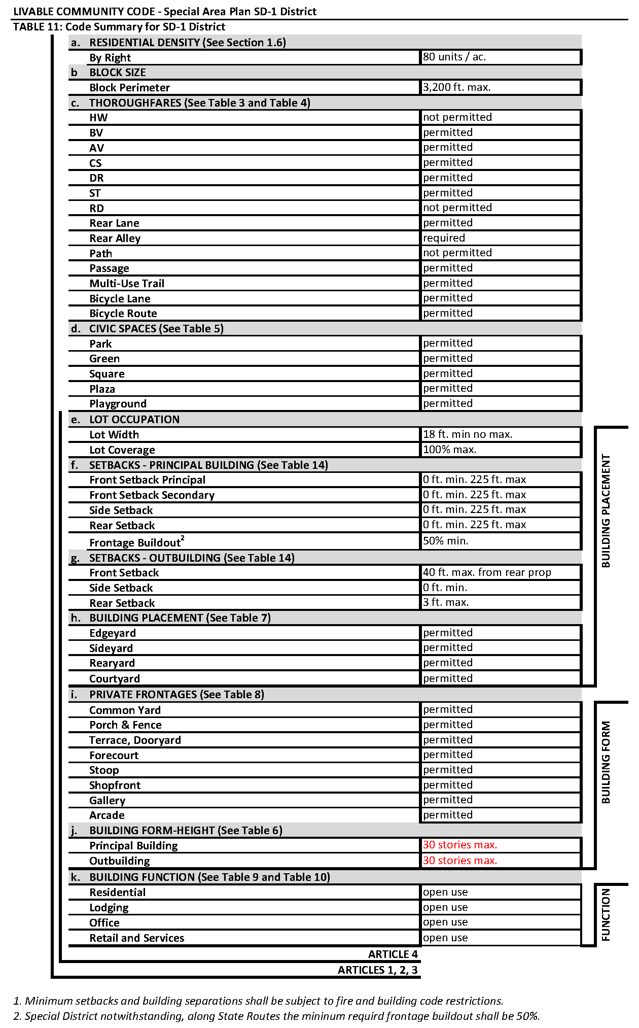 The SD-1 district special area plan attachment A has been updated to the attached SD-3 district special area plan dated May 20, 2021. The SD-3 district special area plan has been modified to combine all transect zones into a single overlay zoning district, see revised SD-3 table 10 (attachment B), special area plan specific function and use, for definition of all specific functions and uses allowed by right or conditionally.