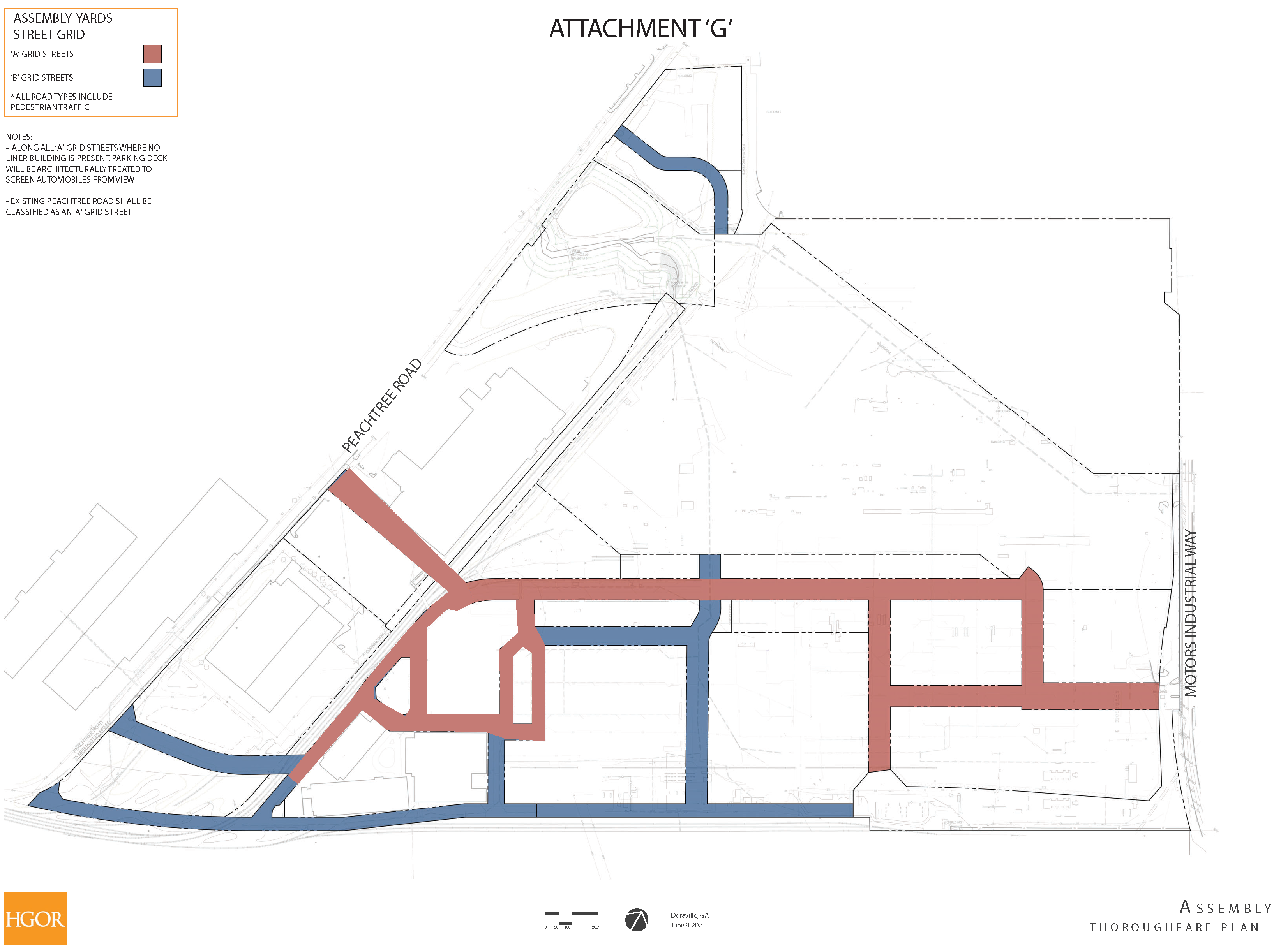 Streets identified as existing in attachment E shall remain A grid or B grid streets as was identified in the original assembly yards thoroughfare plan. This shall be reflected in attachment G.