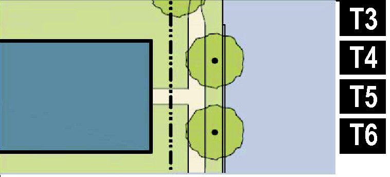 Detached single-family homes: within the T-3 sub-district, garages may be located in the Second Layer.
