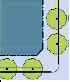 (b) The outside faces of free-standing walls facing neighboring private property shall have a minimum ten-foot wide planted screen and meet specifications and species listed in Table 12A - Landscaping - Trees of the Livable Community Code [7], specifically it is understood that this condition will apply along the outside wall face beyond the studio screen wall facing the neighboring auto dealership properties.