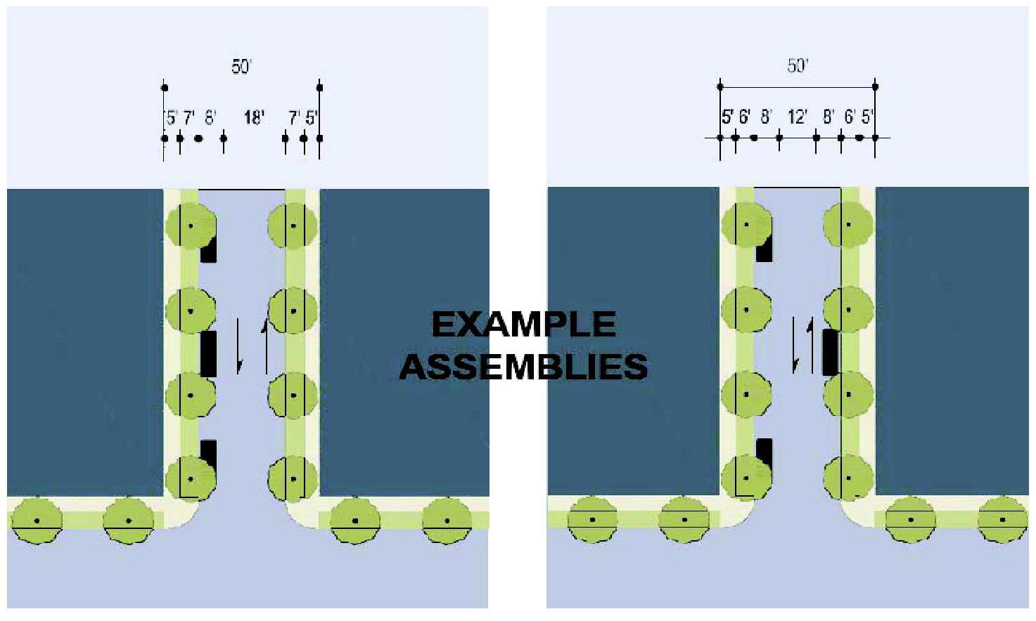 A differentiation of Thoroughfares as A-Grid and B-Grid. Buildings along the A-Grid shall be held to the highest standard of this code in support of pedestrian activity. Buildings along the B-Grid may be more readily considered for variances allowing automobile-oriented standards;
