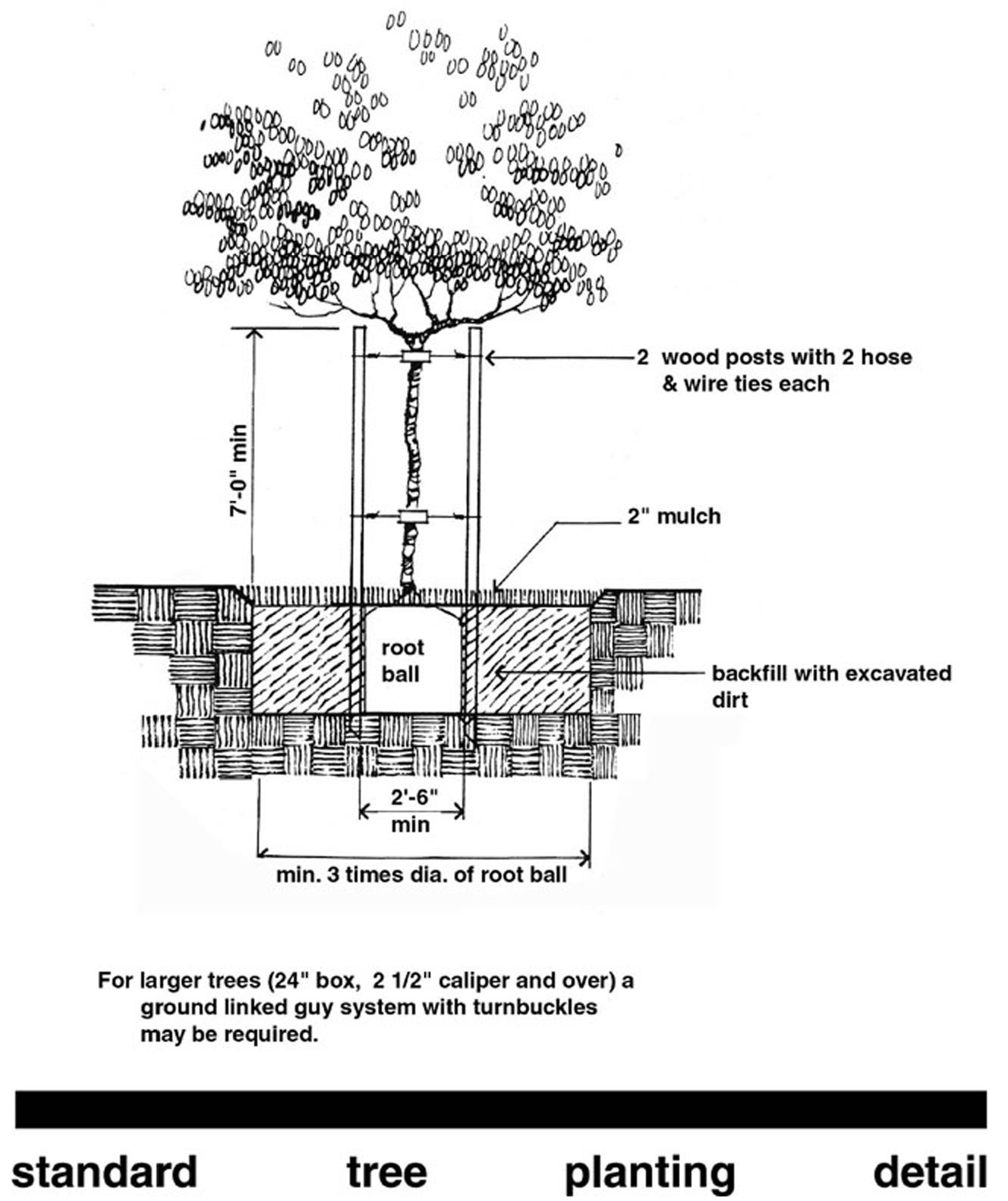 Planting Detail. All street trees shall be planted and staked in accordance with the provisions of Figure 1 of this section, or as otherwise approved by the City.