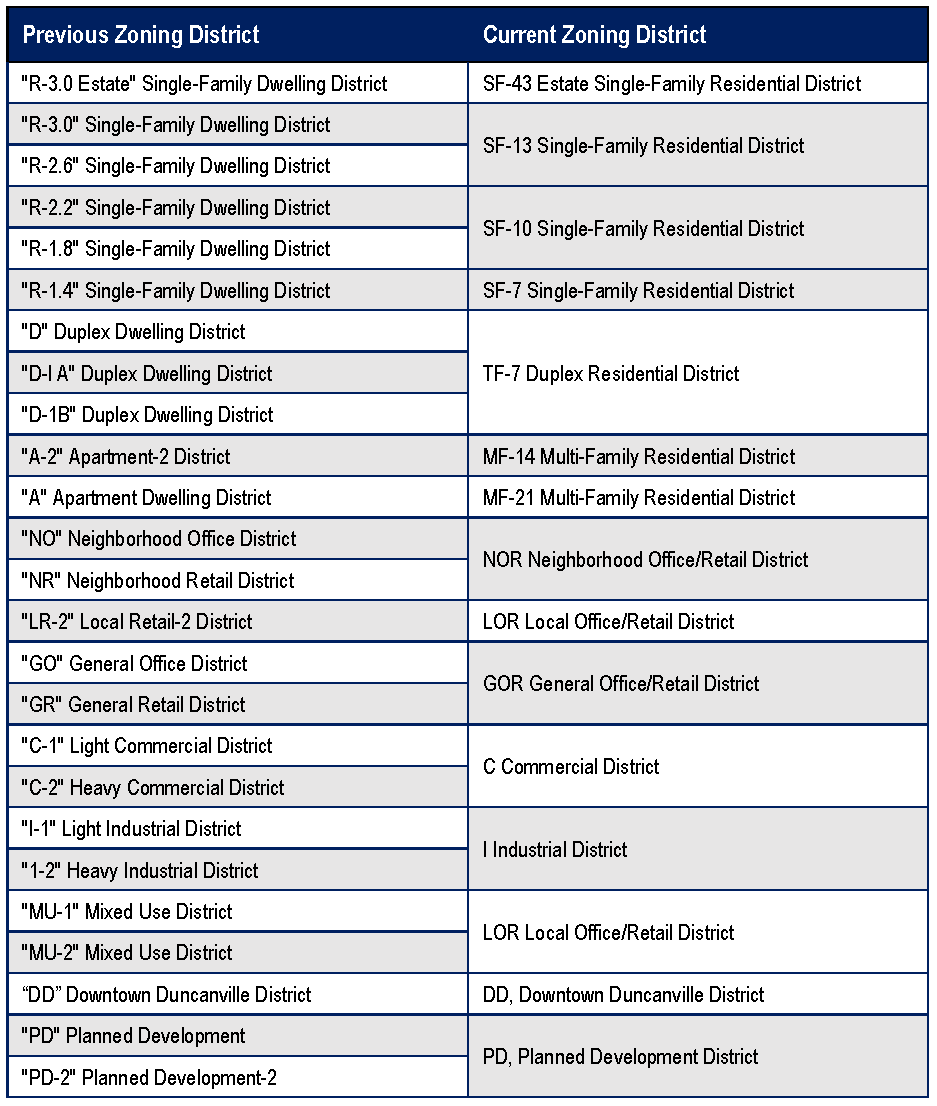 Table 2.01.1. Zoning Districts