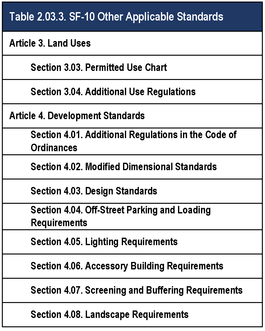 Figure 2.03.3. SF-10 Dimensional Standards.
