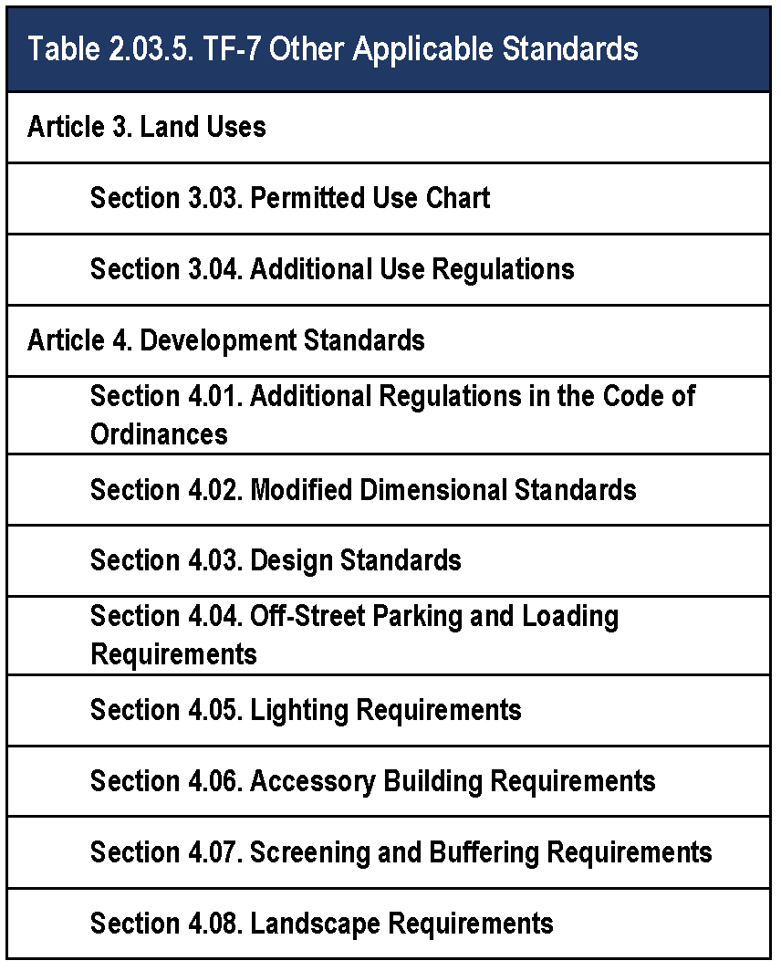 Figure 2.03.5. TF-7 Dimensional Standards.
