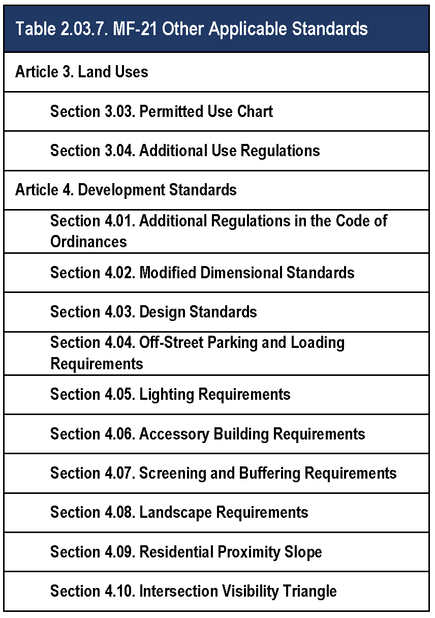 Table 2.03.7. MF-21 Other Applicable Standards.