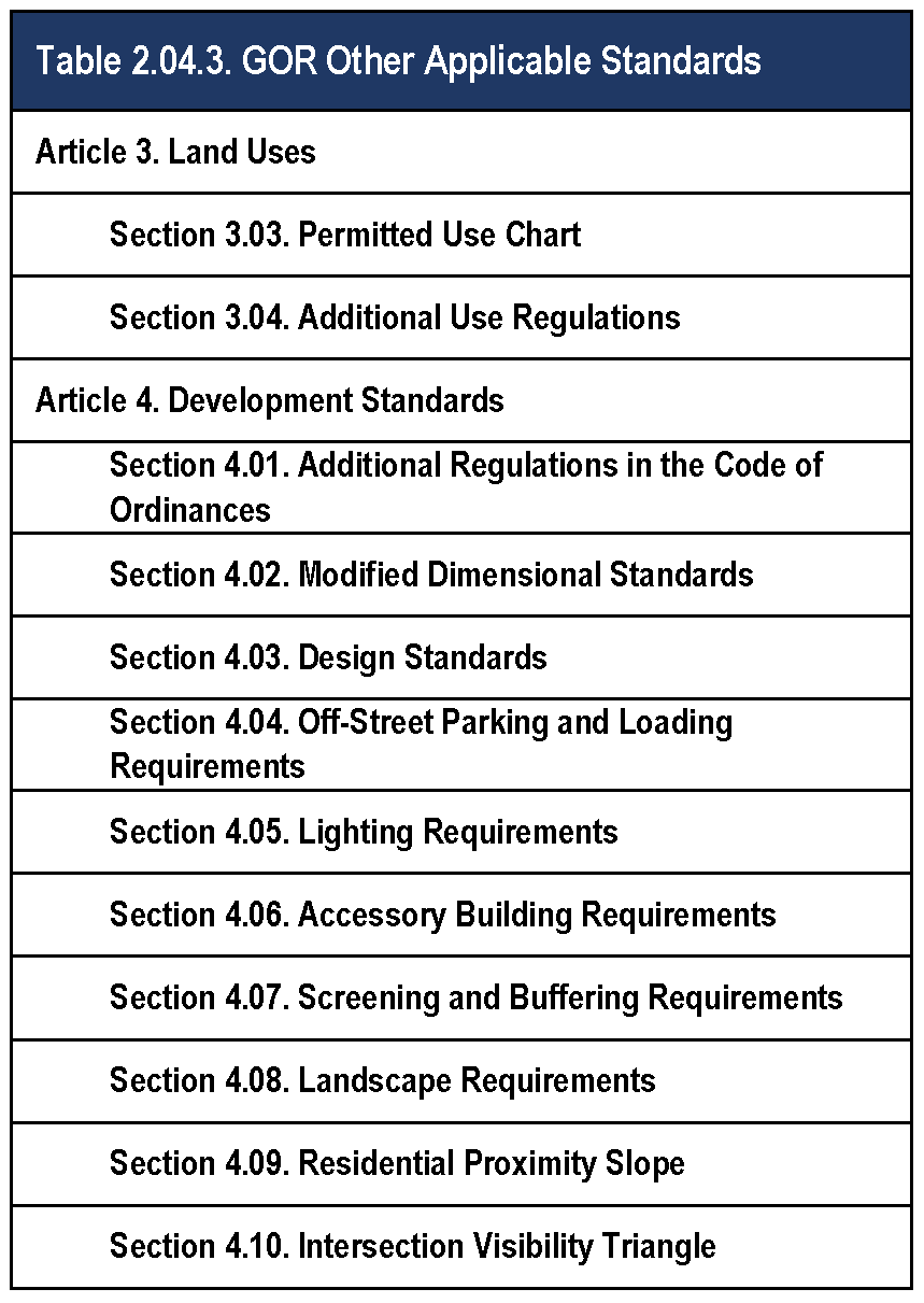 Table 2.04.3. GOR Other Applicable Standards.