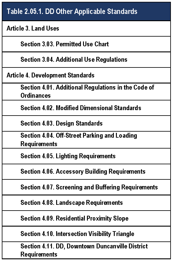 Table 2.05.1. DD Other Applicable Standards.