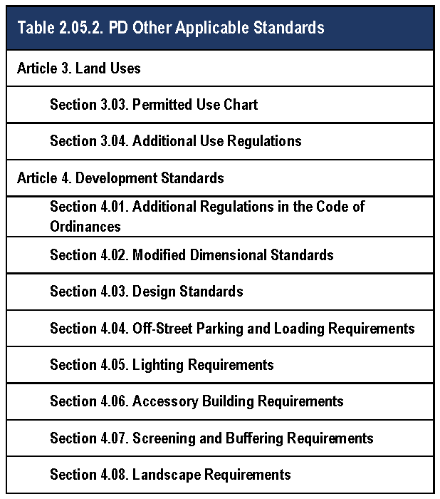 Table 2.05.2. PD Other Applicable Standards.