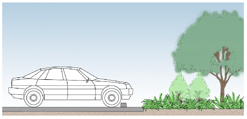 Vehicle stopping device. No parking space shall allow a vehicle to overhang a required landscape area, open space area, sidewalk, street right-of-way or adjacent property (see Figure 4.04.1).