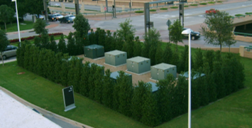 Tower facilities shall be landscaped with a buffer of plant materials that effectively screens the view of the tower compound from residential zoning, or uses. The standard buffer shall consist of a landscaped strip at least four feet wide outside the perimeter of the compound, to be approved by the director of public works.