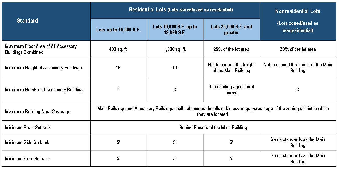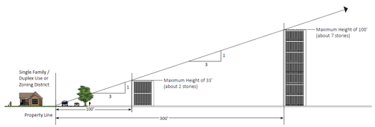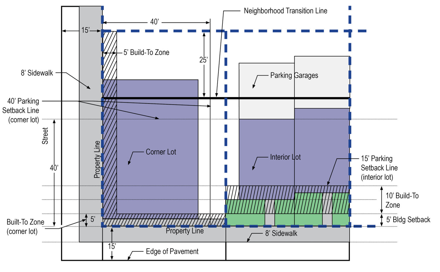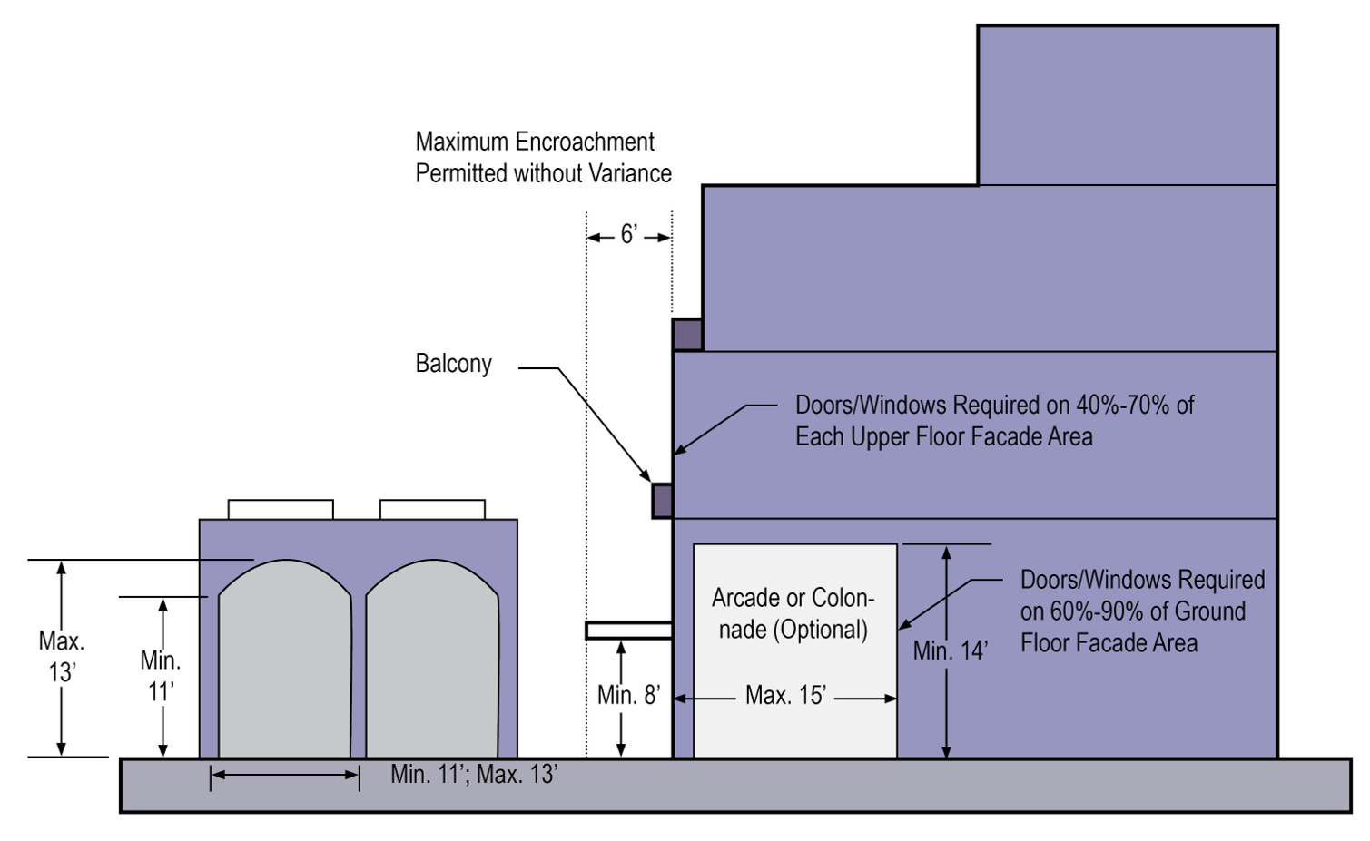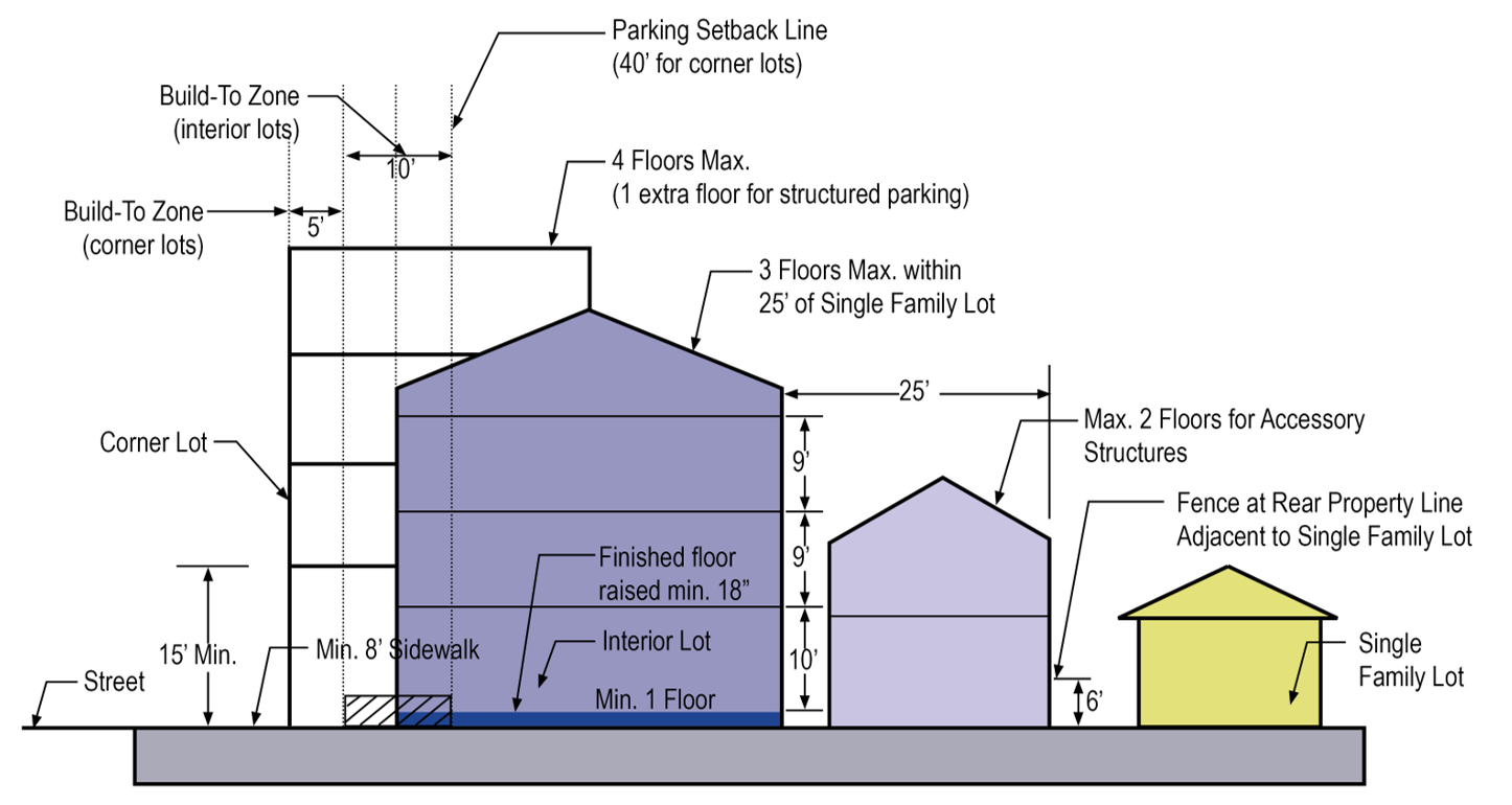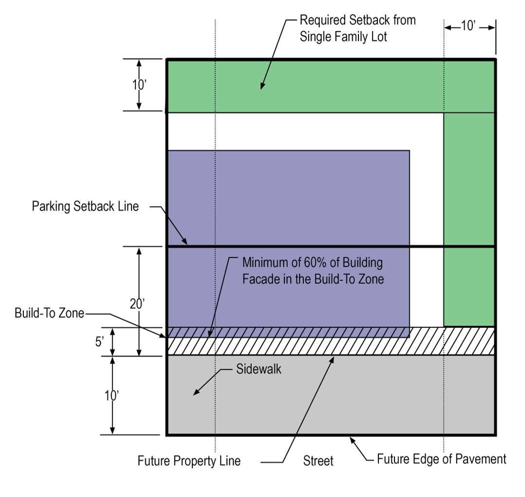 Example: A 30 foot setback and 50 percent maximum lot coverage would become a 24 foot setback and 70 percent maximum lot coverage,