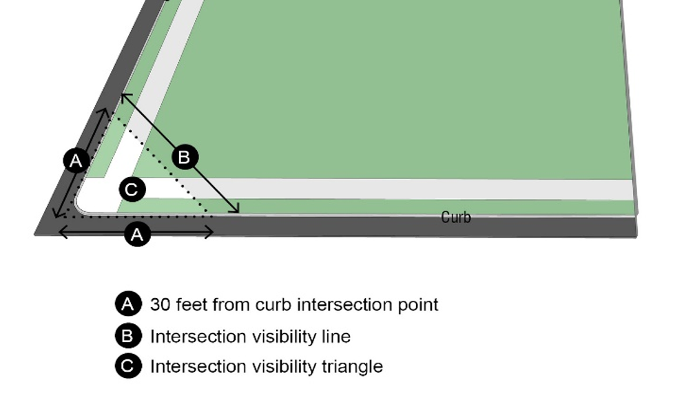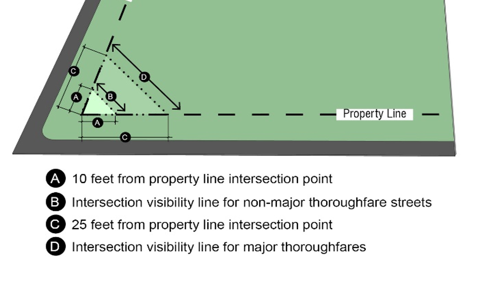 Vision clearance. On any comer lot on which the front and side yards are required, no wall, fence, structure, sign, tree, shrub, or hedge may be maintained as to cause danger to traffic by obstructing the view, and when topography prevents a clear view, this bank shall be moved.