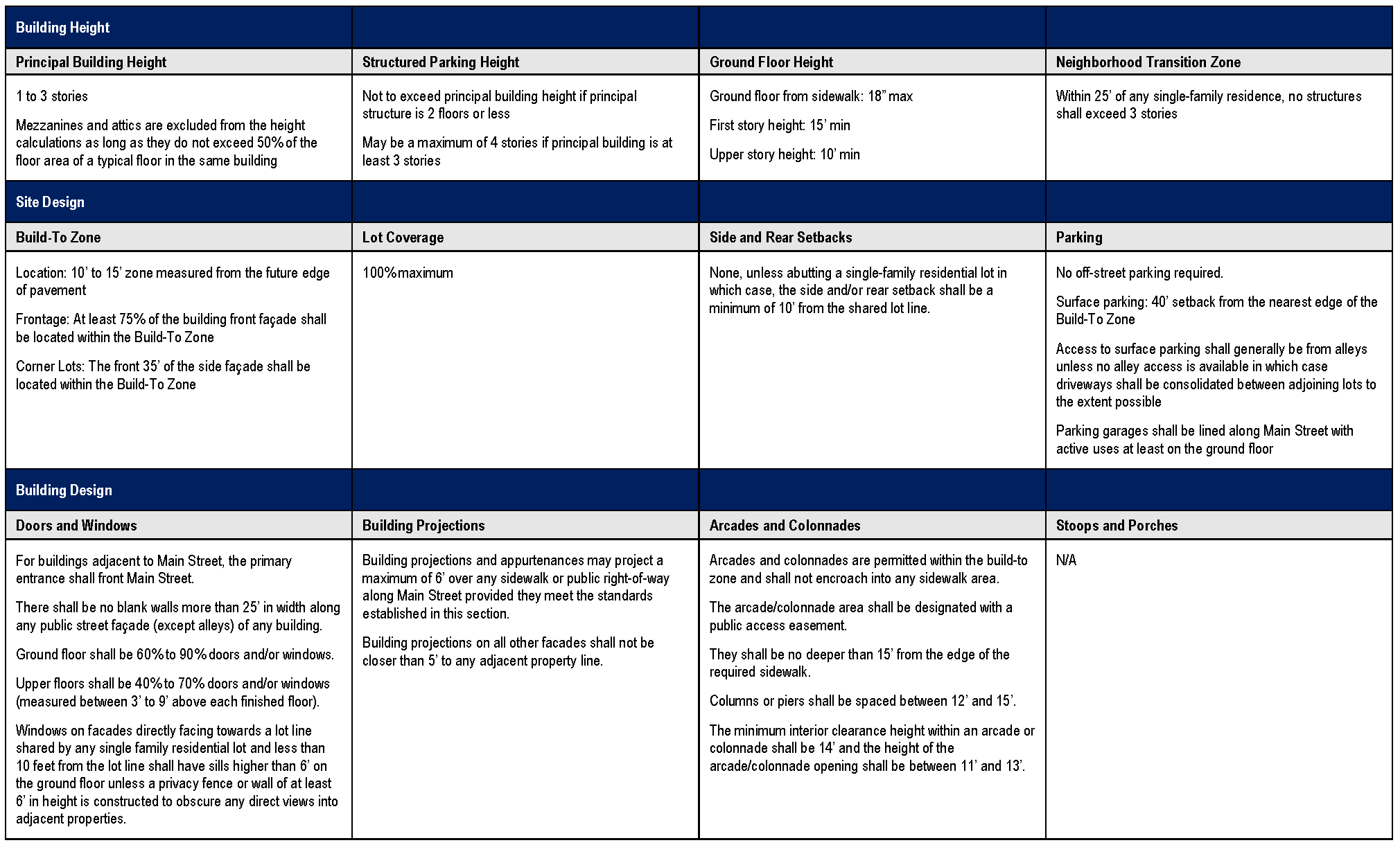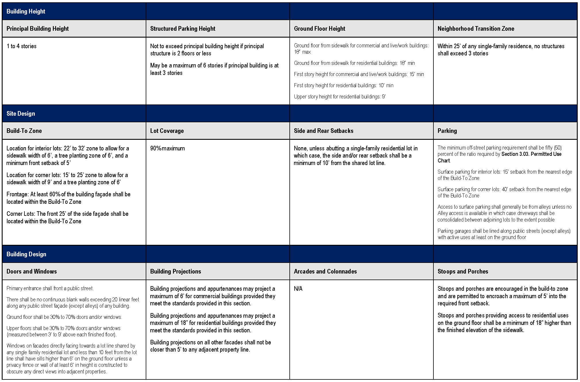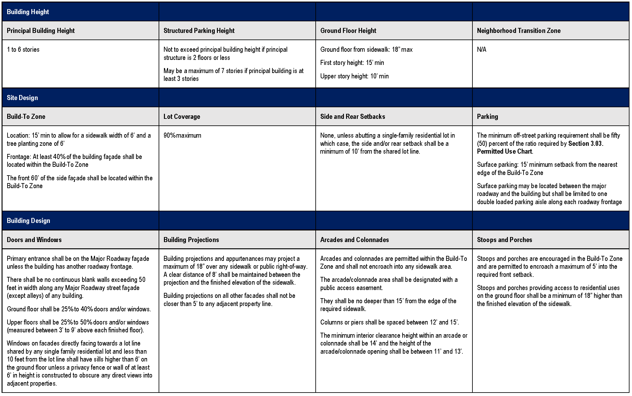 Dimensional standards in the opportunity areas. The dimensional standards required by Article 2. Zoning Districts are modified to encourage redevelopment within the opportunity areas identified within the comprehensive plan. Dimensional standards within the opportunity areas (with the exception DD, Downtown Duncanville District) are modified as follows:
