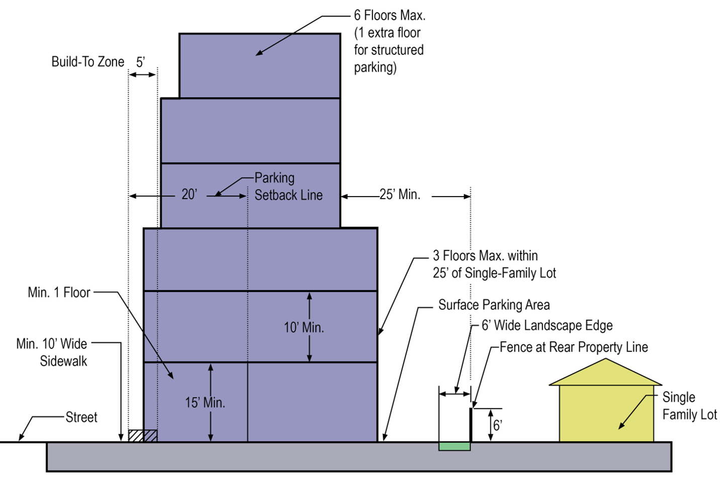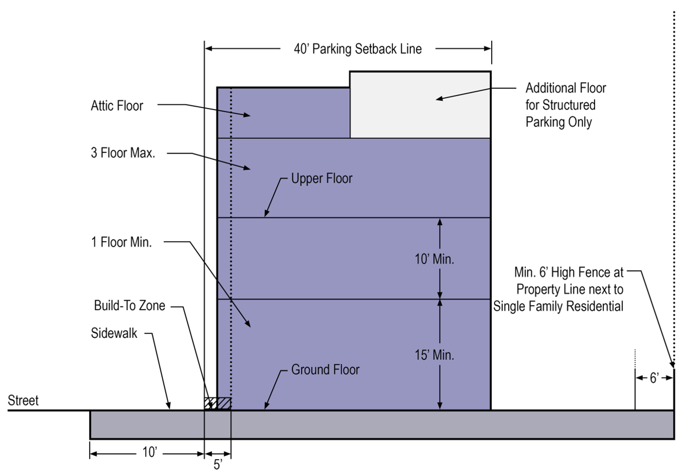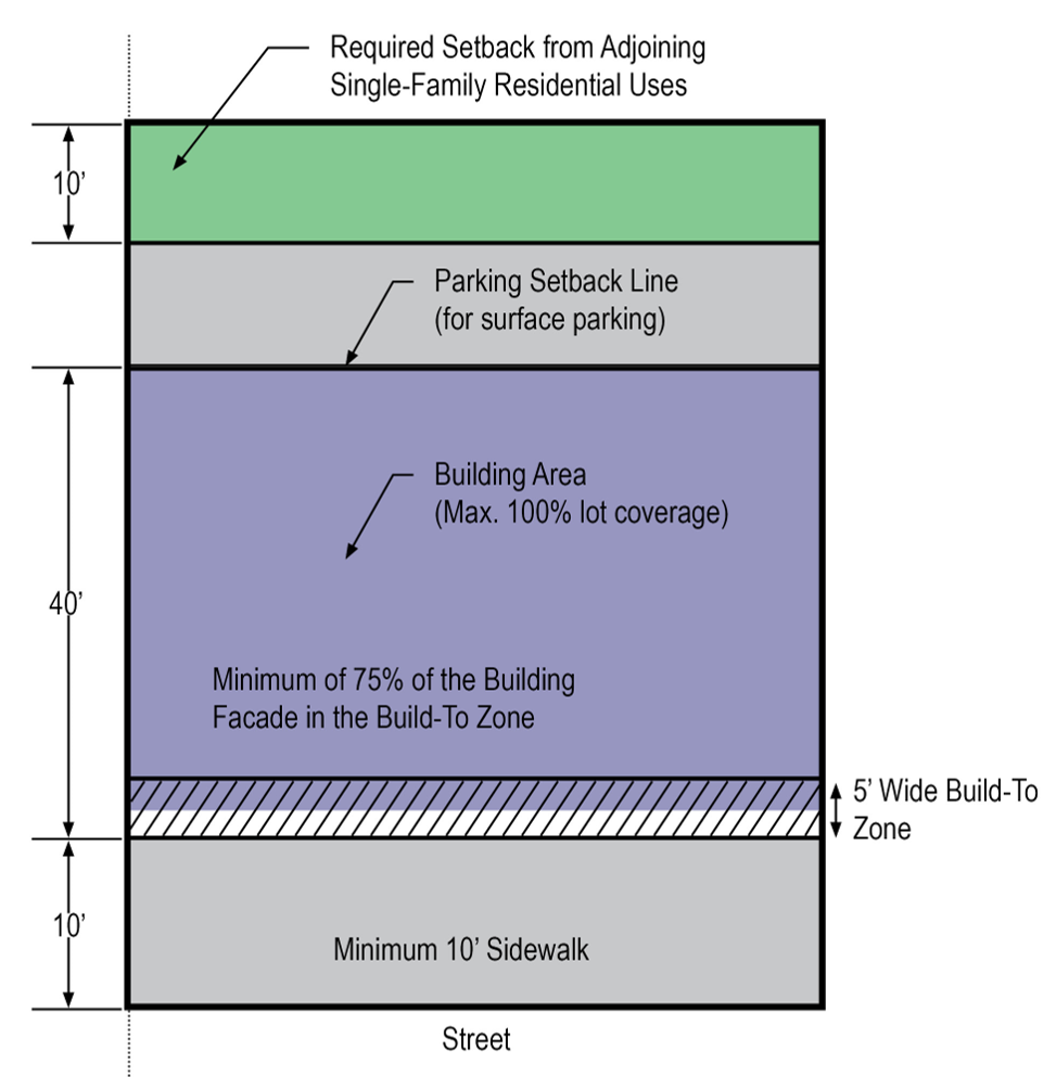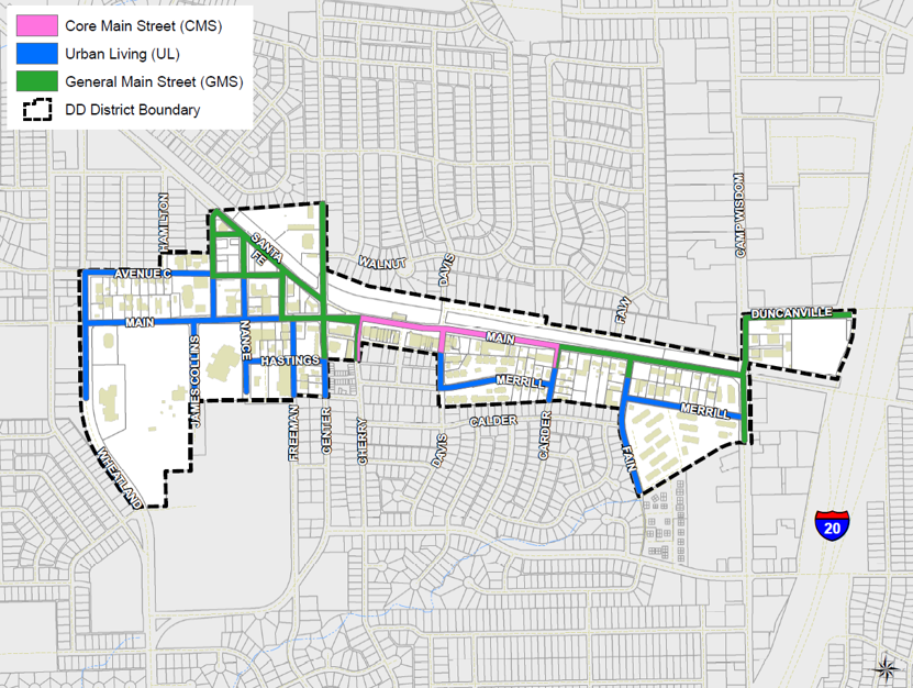 Dimensional standards in the opportunity areas. The dimensional standards required by Article 2. Zoning Districts are modified to encourage redevelopment within the opportunity areas identified within the comprehensive plan. Dimensional standards within the opportunity areas (with the exception DD, Downtown Duncanville District) are modified as follows:
