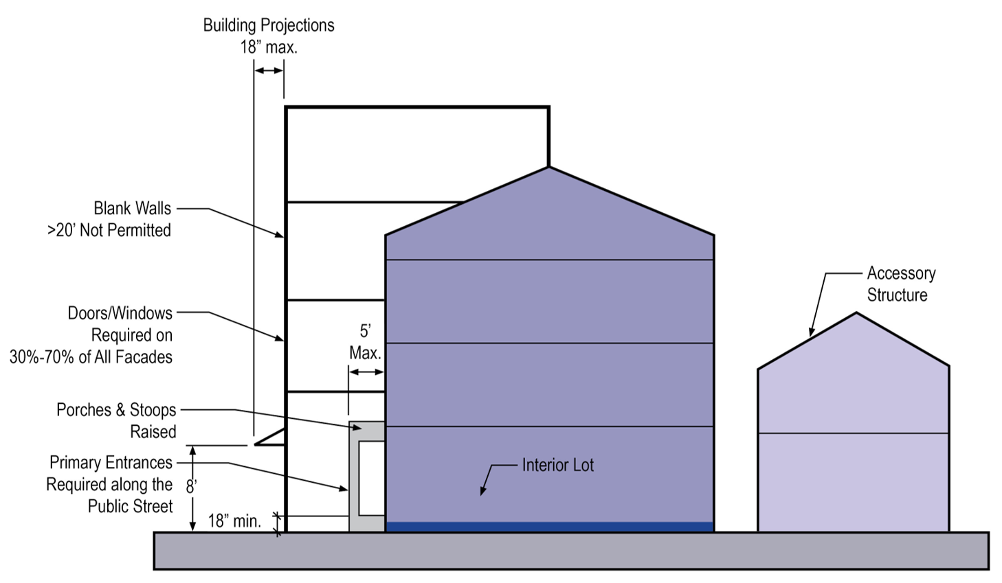 This section addresses townhomes where multiple units are adjoined across property lines. This section does not apply to townhomes located on a single lot.
