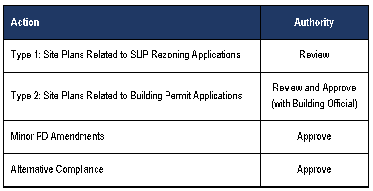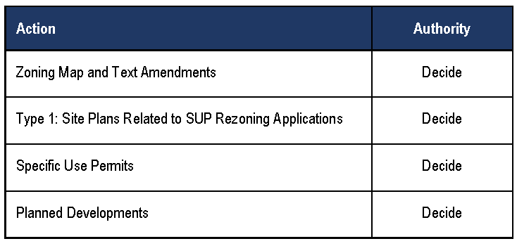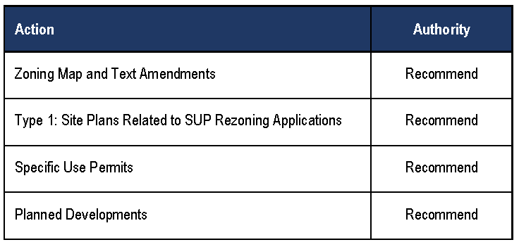Table 5.02.1. Planning and Zoning Commission Responsibilities