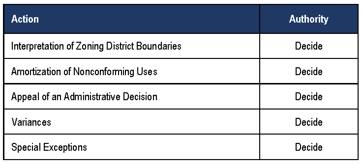 Table 5.03.1. Zoning Board of Adjustment Responsibilities