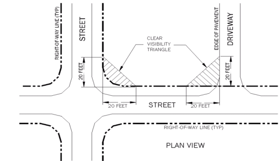 Development in the central business district may be built up to a proposed right-of-way line of an abutting roadway. There are no building setbacks from an abutting right-of-way in the central business district. However, buildings, signs or other structures shall not obstruct the vision of vehicle operators nor protrude into the right-of-way.