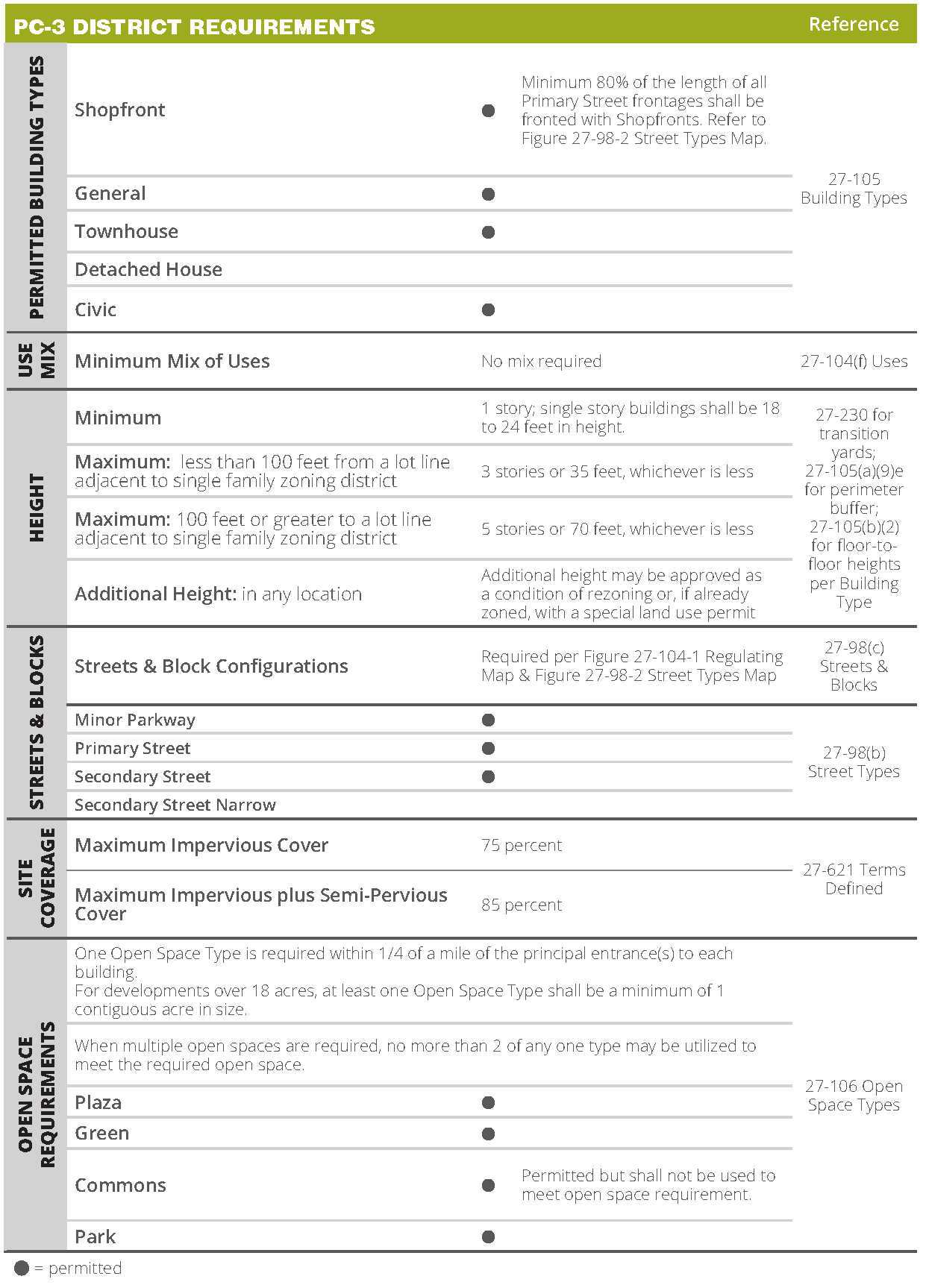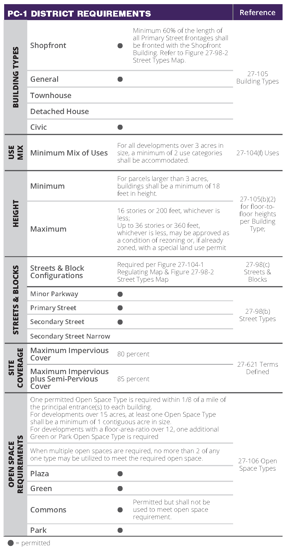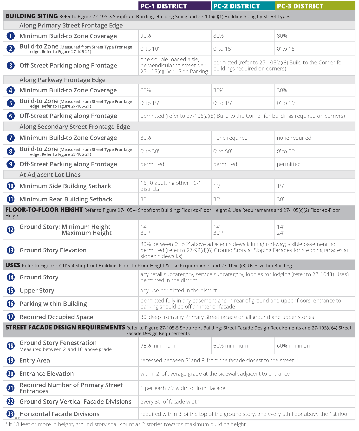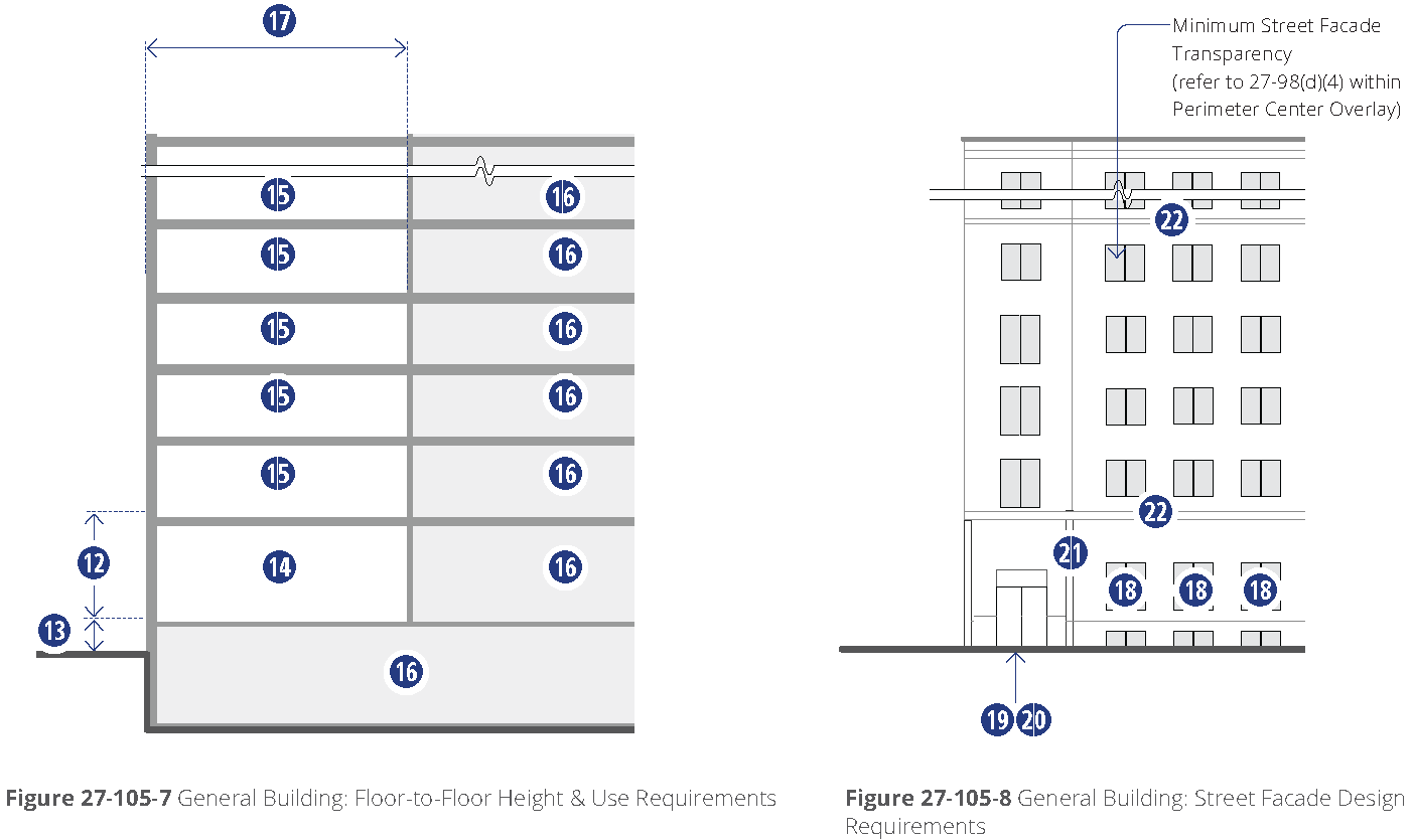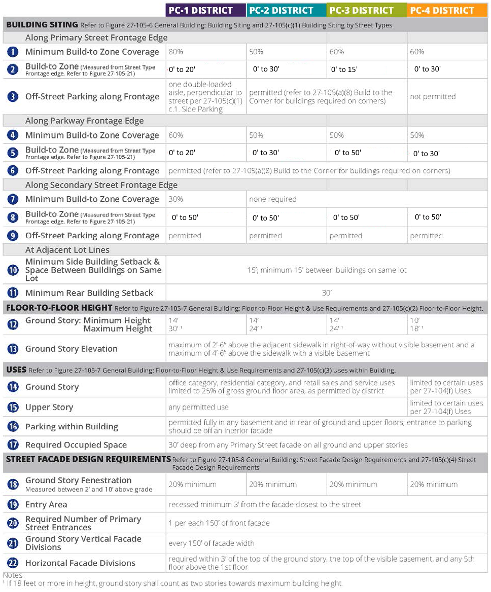 Overall permitted building heights are designated by district in stories. Refer to section 27-107B(b) through (e).