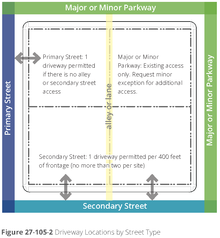 Location. Garage doors are not permitted on primary street façades unless not utilized for vehicular access (but may be used for patio access, open air dining, or similar purposes). Garage doors are permitted on secondary street façades with direct access to the street. The preferred location is on interior lot façades.