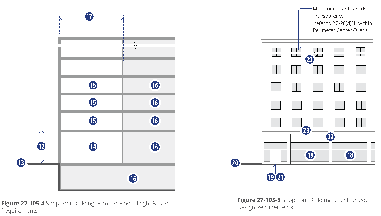 Standards. The following are the regulations for shopfront buildings.