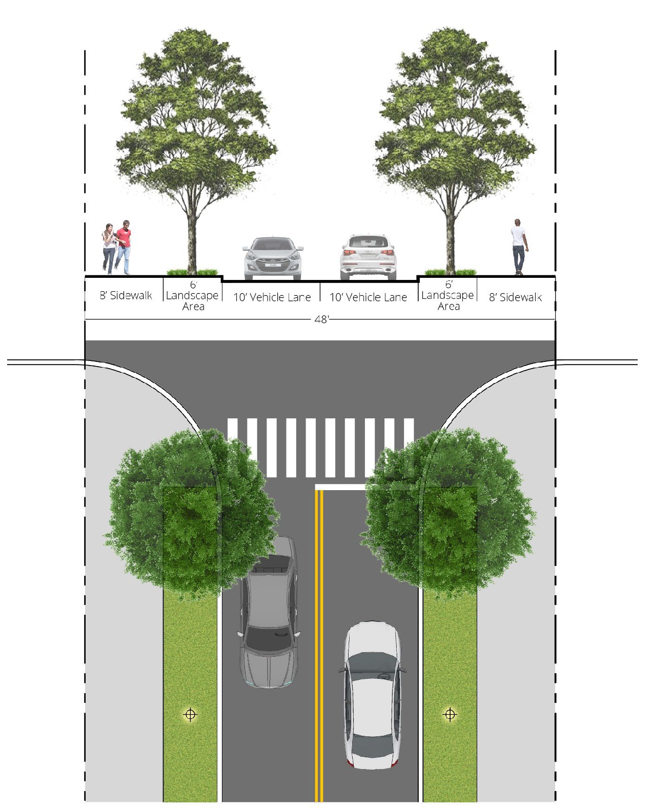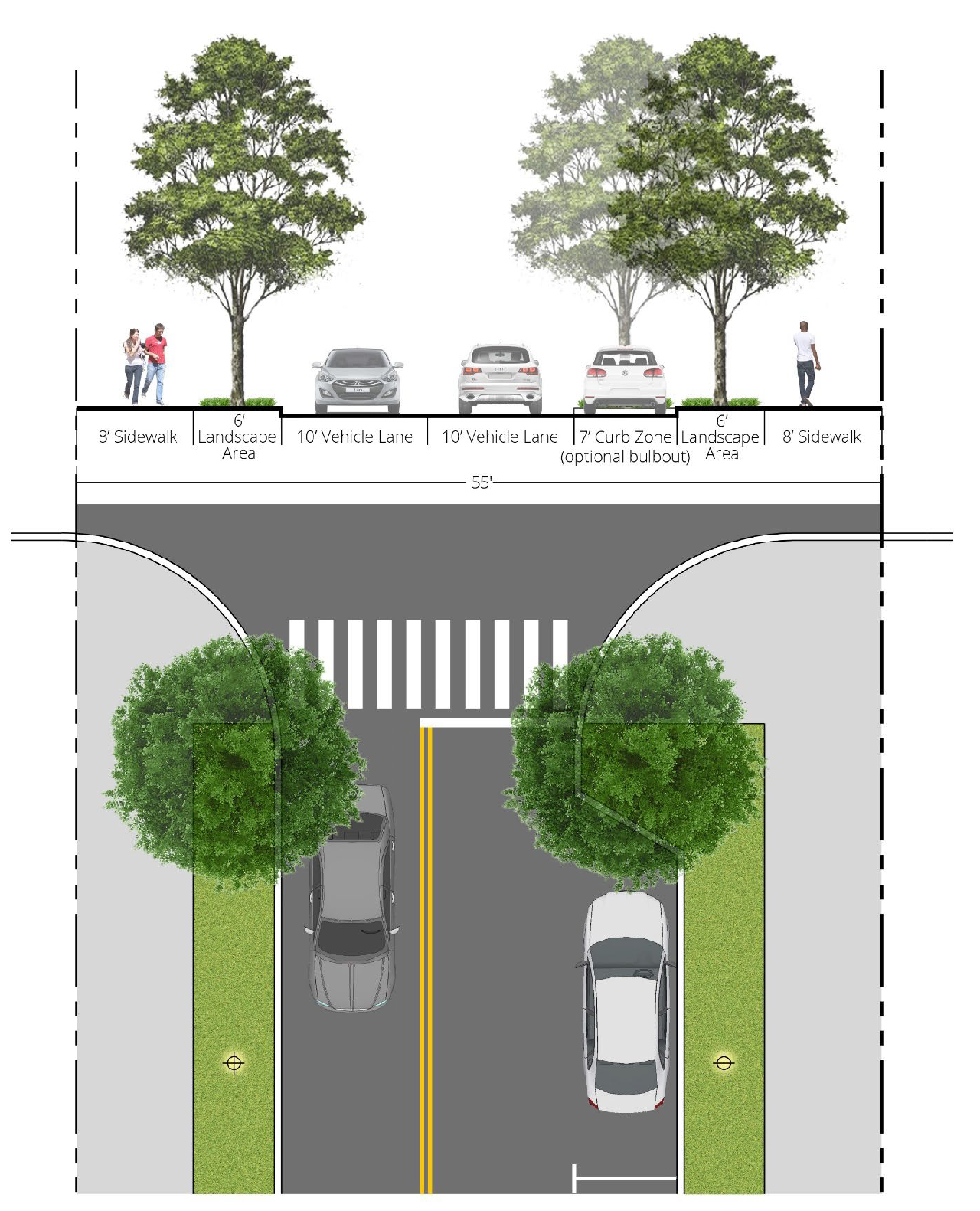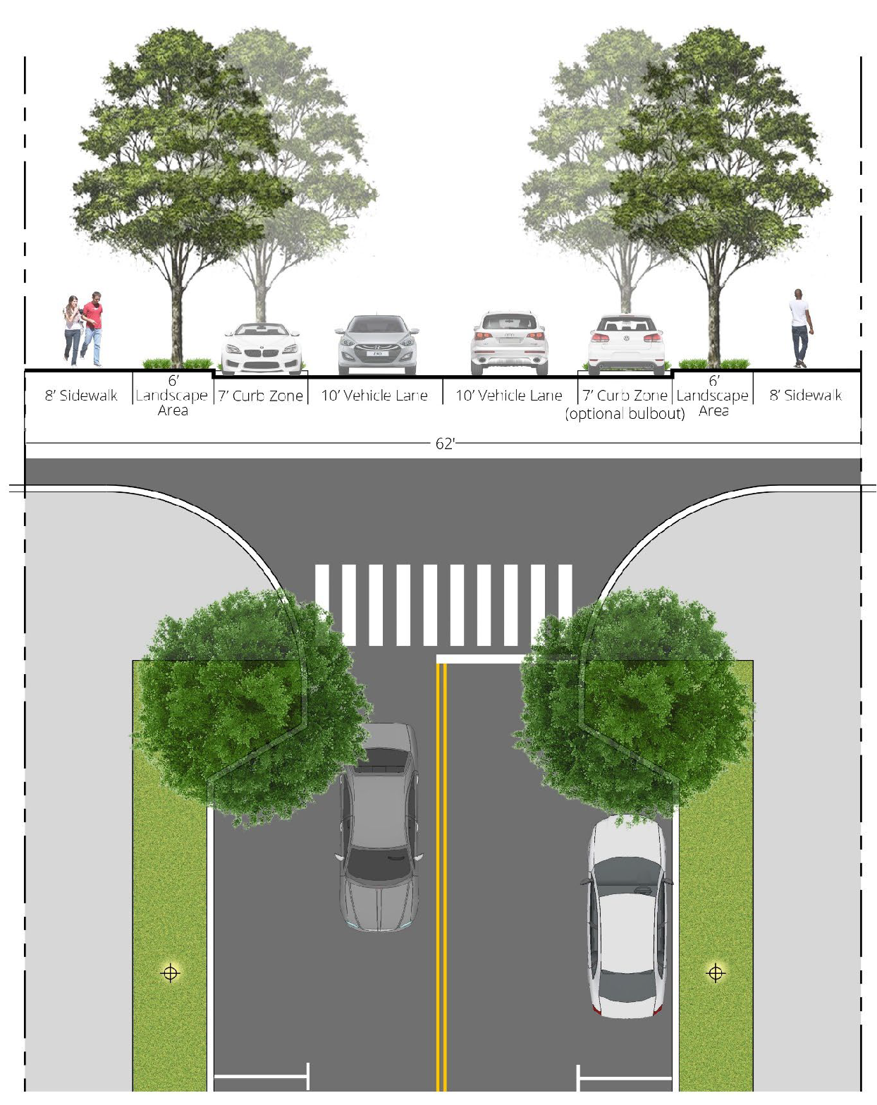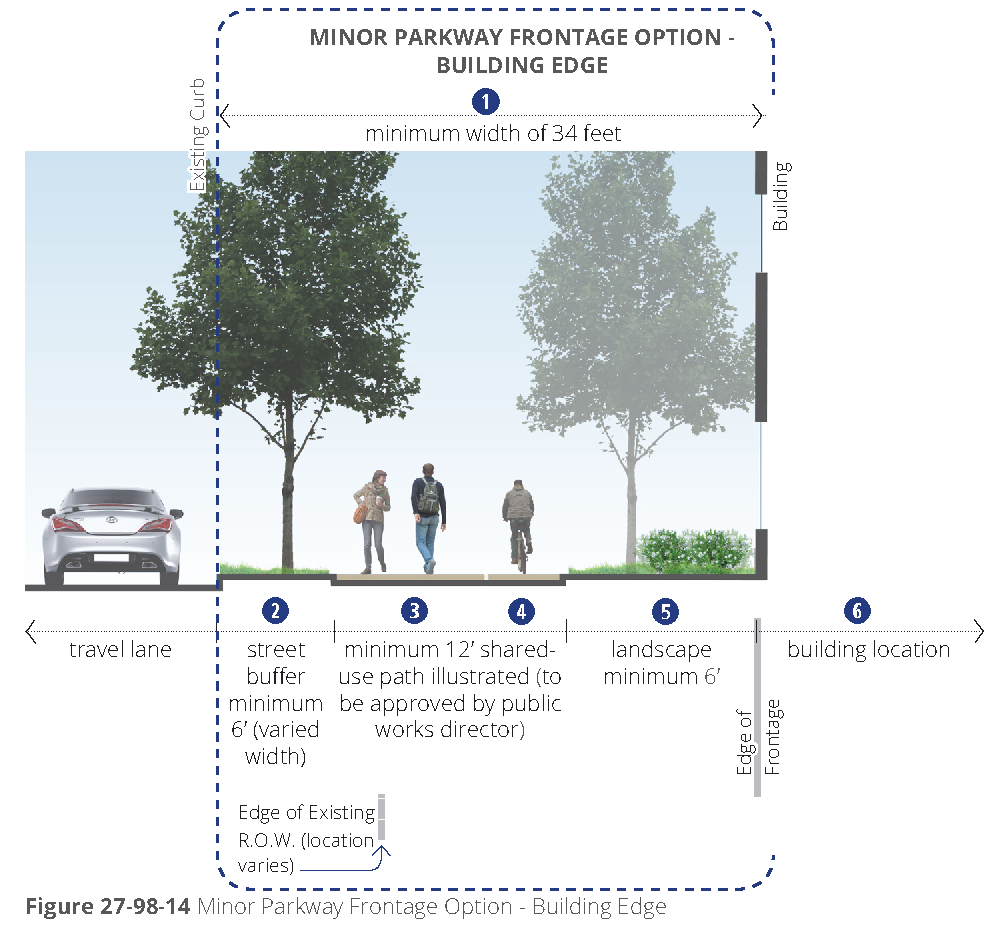 [6] Street-facing garage façades must be setback at least 20 feet from back of curb or back of sidewalk, whichever is greater.