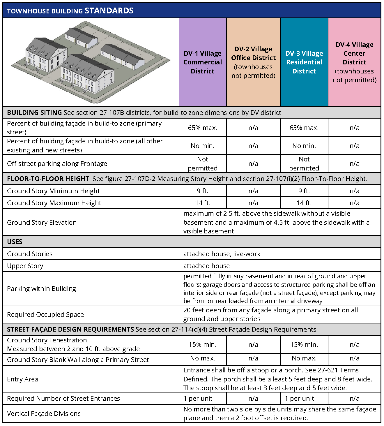 Standards. The following are the regulations for townhouse buildings.