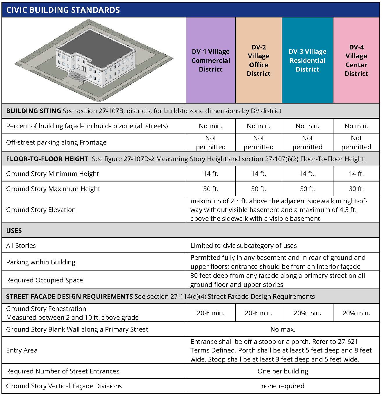 Standards. The following are the regulations for civic buildings.