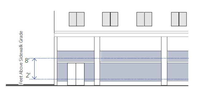 Blank wall area regulations apply in both a vertical and horizontal direction.