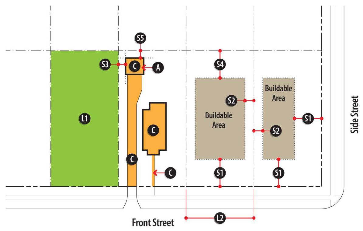 Figure 4-1: Lot and Building Regulations Diagram, Single-Dwelling Residential Districts