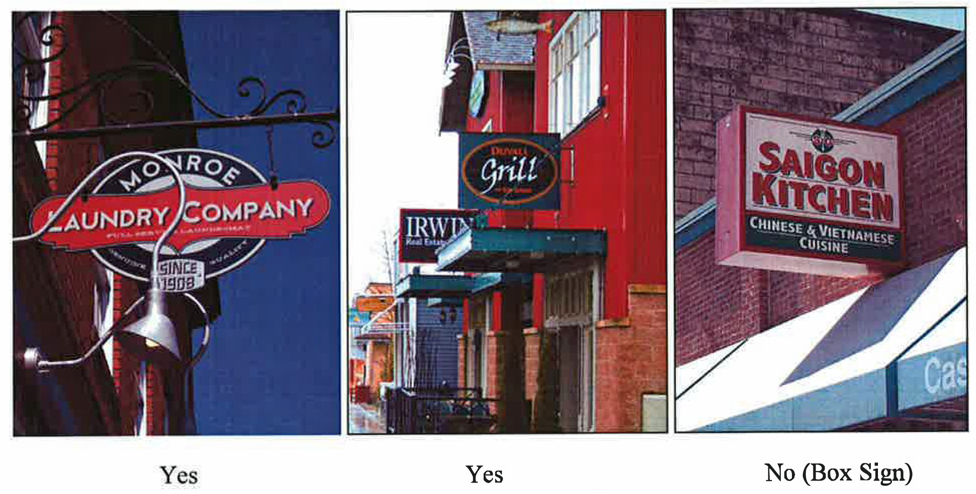 Ensure all signage meets the intention of the City-Wide Visioning, Downtown Sub-Area Plan, Duvall Municipal Code (DMC) 14.34 - Design Guidelines, and Comprehensive Plan.