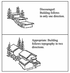 Step a building foundation to follow the slope (fifteen percent or greater) of the site when feasible.