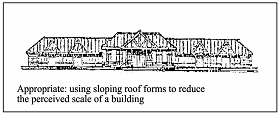 Using sloping roof forms to reduce the perceived scale of a building is encouraged.