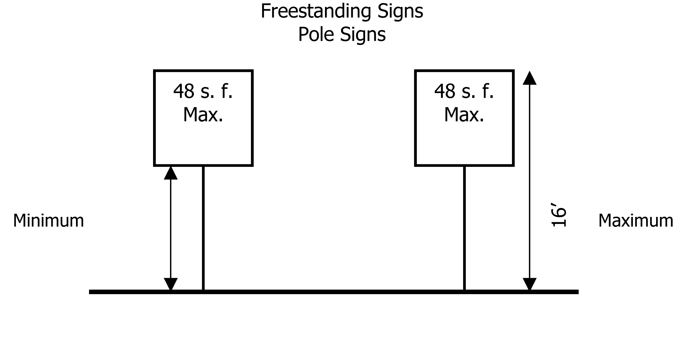 No signs, buildings, or structures of any kind shall be permitted within the right-of-way area and no variances from these requirements shall be granted by the planning commission. All other setbacks, yards, and area requirements shall be met and measured from the property lines.