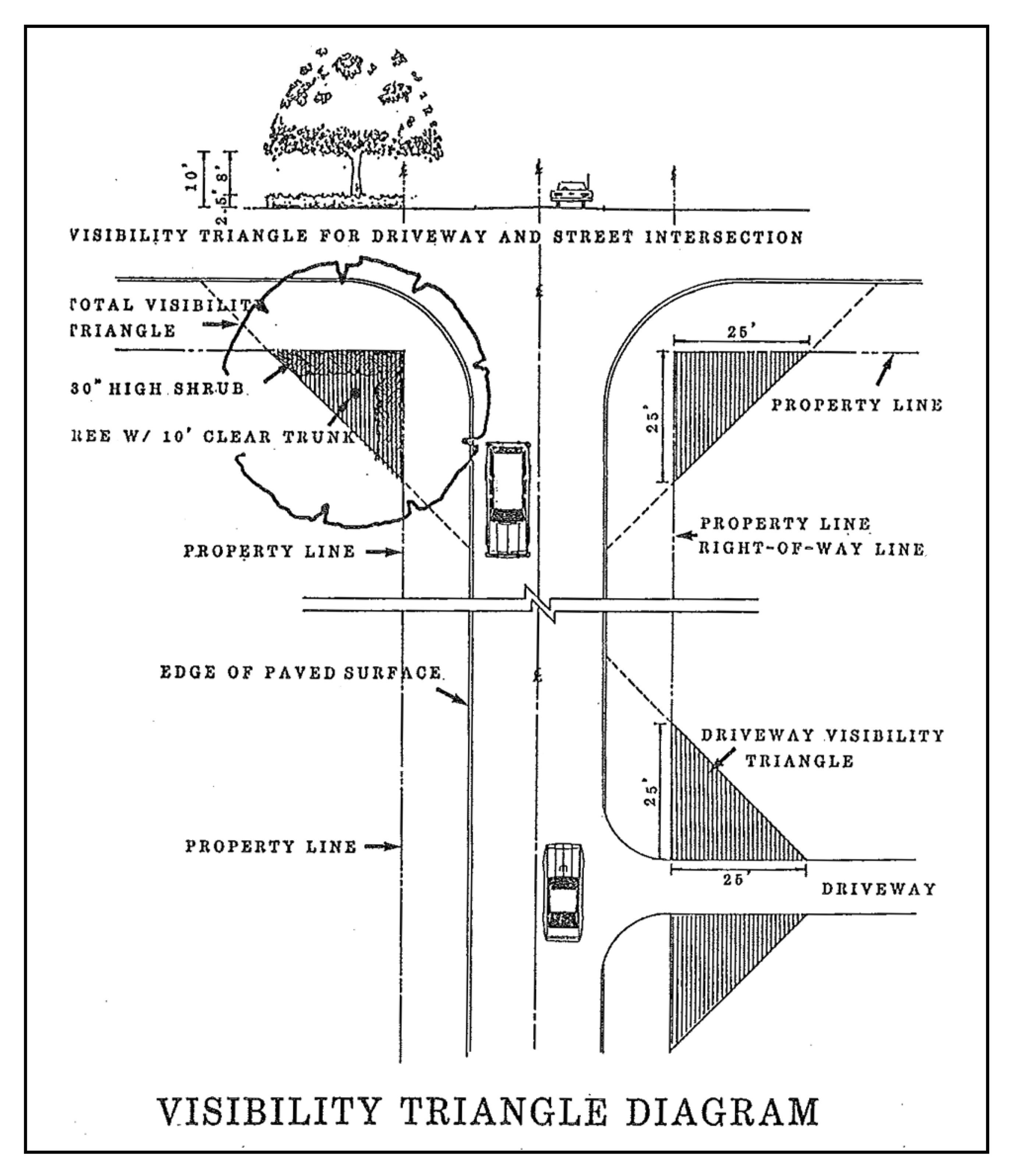 Parking spaces may be provided beginning at a point no closer than 20 feet from the centerline of the right-of-way.