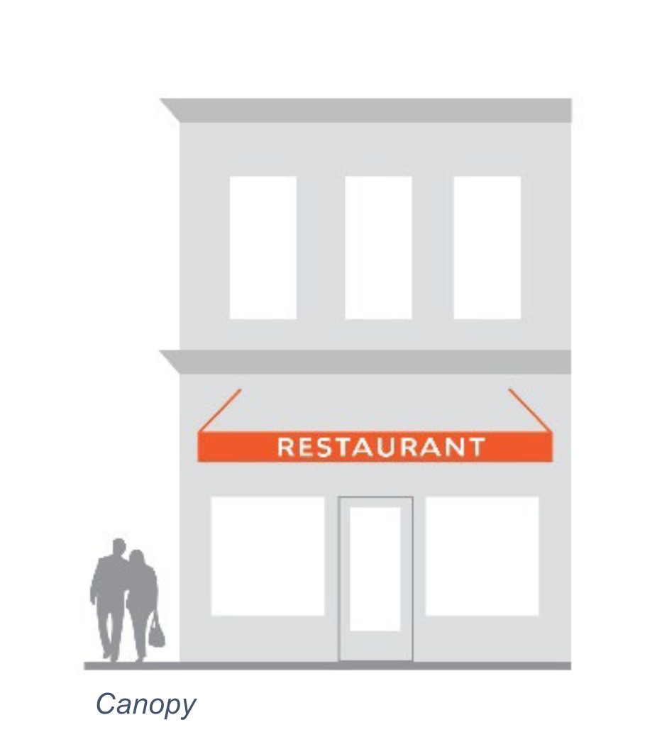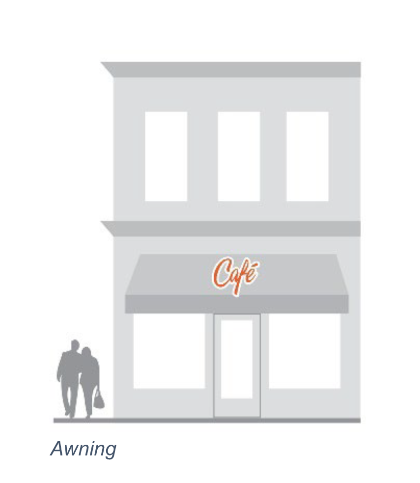 Awning (or canopy). A retractable or fixed shelter constructed of materials on a supporting framework that projects from the exterior wall of a building. A canopy or awning is placed over a door, window, entrance, outdoor service area or entire building. The canopy or awning sign is an integral and permanent part of that awning, canopy or other fabric, plastic, or structural protective cover. A marquee sign is not a canopy sign.
