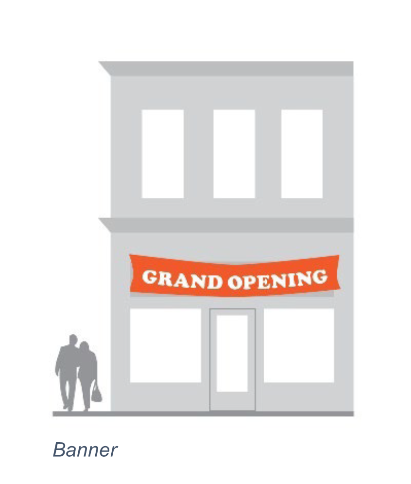 The following signs are only permitted on a temporary basis: Exterior pennant strings, flutter flags, spinners, banners, and streamers.