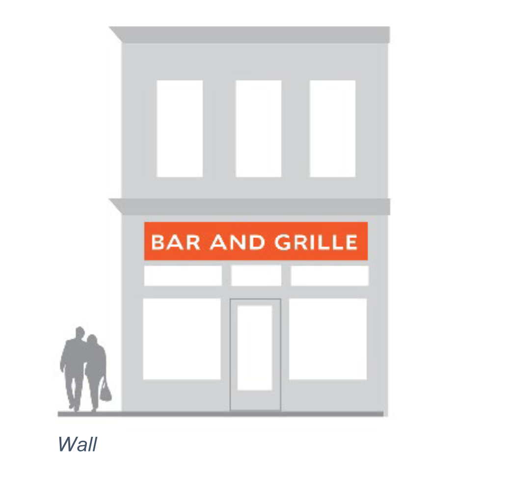 Wall sign. Any single-faced sign that is attached directly parallel to a wall, painted on the wall surface of, or erected and confined within the limits of an outside wall of any building or structure, which is supported by such wall or structure; this includes permanent window signs.