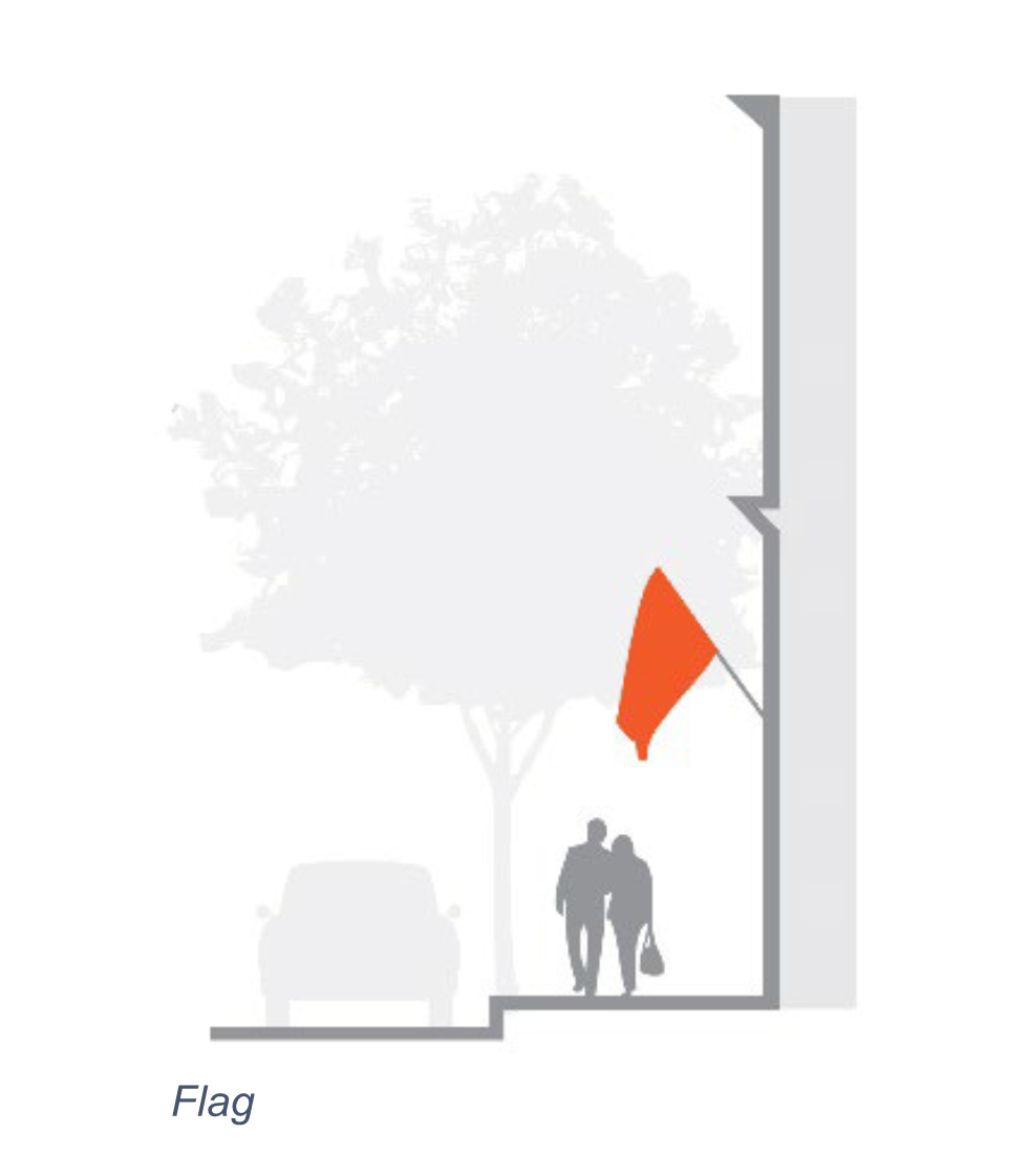 Flag. Any fabric, banner, or bunting containing distinctive colors, patterns, or symbols used to distinguish a government, political subdivision, or other political entity. Flags are typically supported on one side of the sign. Flags are not considered air-activated signs for the purposes of this ordinance.