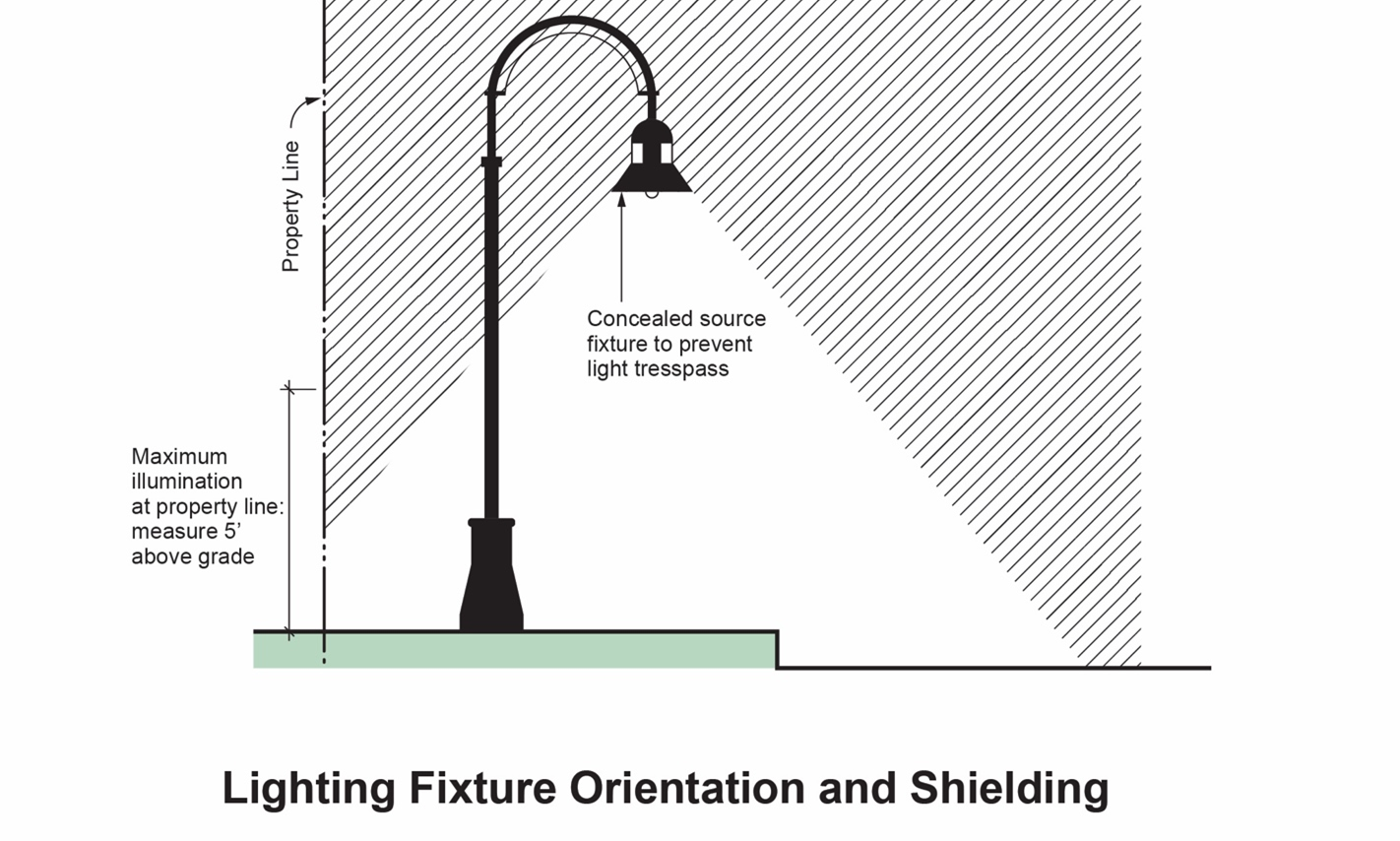 Consistent fixtures. The type and design of lighting must be consistent throughout a site.