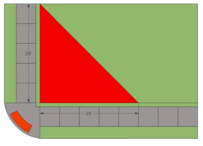 Fences, over 30 inches in height (other than split rail and chain link) cannot be constructed within the clear corner vision triangle.